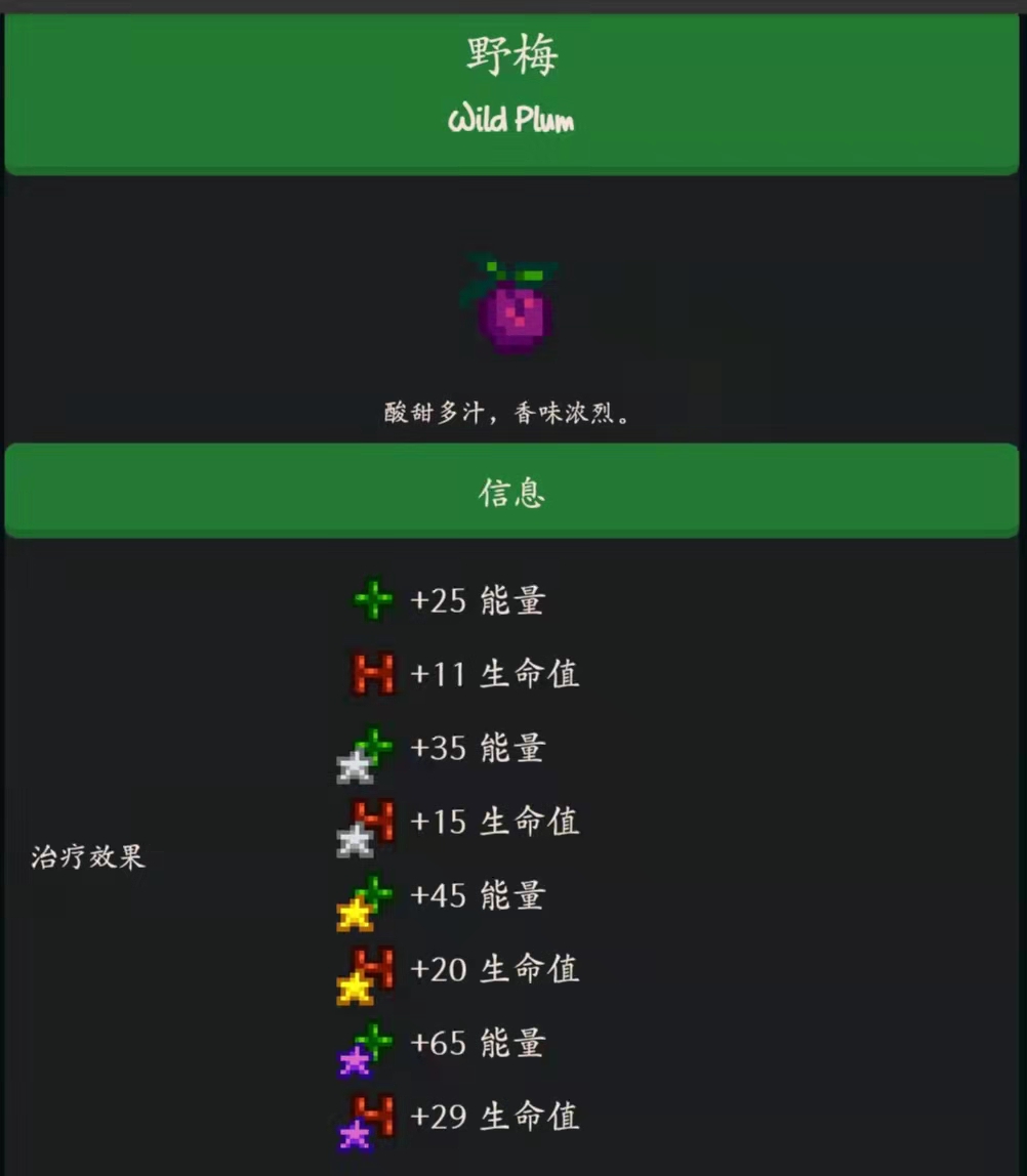 首頁 星露穀物語 問答 星露穀物語野莓在哪? 2023-01-09 野莓位置介紹:在游戲《星露穀物語》中,野梅位於鵜鶘鎮中,是一種野果,由秋季種子生長而成的,野梅子可用於工藝室的秋季覓食收集包,野梅子可以製作秋季種子。
