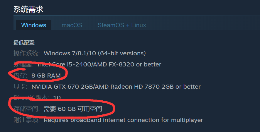 首頁 方舟:生存進化 問答 方舟端游多少g? 2023-01-09 方舟端游需要8gb內存和60gb儲存空間。1、玩家打開steam,搜索方舟:生存進化這個游戲。2、點擊進入游戲詳情頁面,玩家可以看到游戲系統需求有說明需要8gb內存和60gb儲存空間。