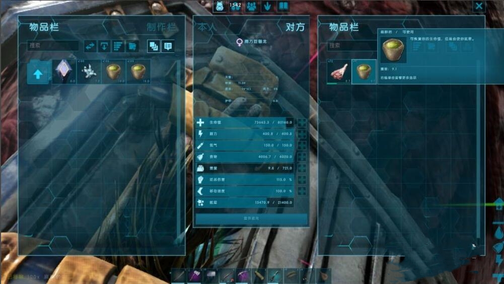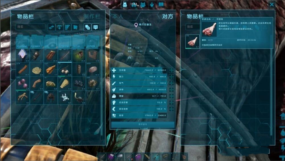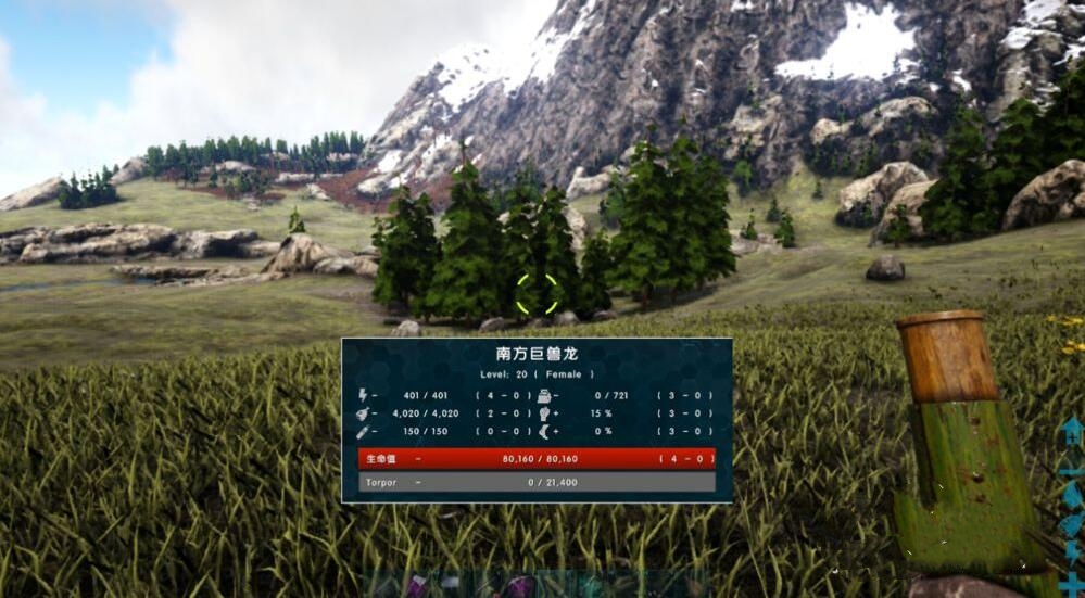 5、南巨暈倒之後,馴服的時間是很長的,而且眩暈掉的非常快,最好用飼料,馴服南巨效果最好的是風神翼龍蛋飼料,其次是生羊肉,熟羊肉,然後是優質生肉。