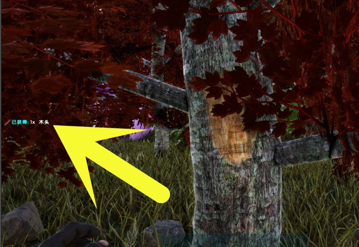 3.攻擊大樹後,玩家就可以得到木頭,如圖所示的。