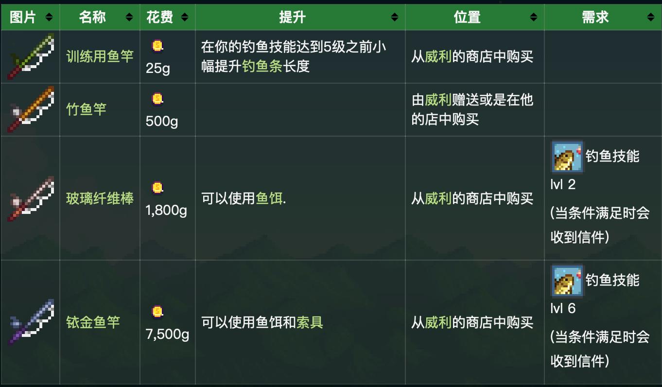 首頁 星露穀物語 問答 星露穀物語最好的魚竿是什麼? 2023-01-11 在星露穀物語游戲中,銥制魚竿是最好的魚竿,也是所有魚竿中價格最貴的魚竿,這個魚竿可以同時放置索具和魚餌。釣魚6級後可從威利處以7500金幣購得。主要是增加了索具功能,並不會對釣魚時判定條長度產生影響。