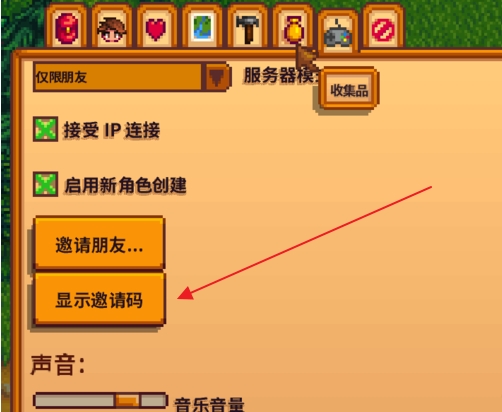 1、星露穀物語邀請碼可以在選項里看,如下圖,打開選項並選擇顯示邀請碼。