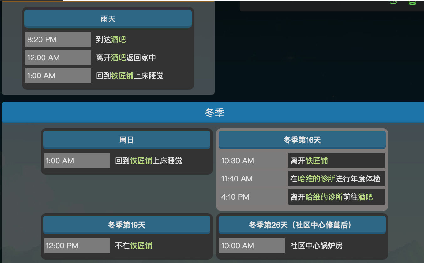 首頁 星露穀物語 問答 星露穀物語克林特在哪裡找? 2023-01-11 1、克林特是星露穀物語中鵜鶘鎮的一名村民。他經營著當地的鐵匠鋪。他的家就在鐵匠鋪,一般我們可以去鐵匠鋪找克林特。2、有時克林特會不在家,他可能會在酒吧(幾率較大)、哈維的診所或者社區中心鍋爐房。