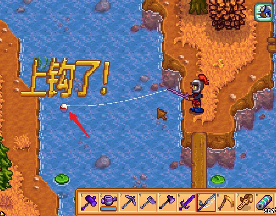 首頁 星露穀物語 問答 星露谷釣魚怎麼操作? 2023-01-12 1.對准水面按左鍵進行拋竿,蓄力越大拋得越遠。出現黃色感嘆號,按滑鼠左鍵收線。2.按滑鼠左鍵移動綠色能量條,觀察魚的移動方式,確保魚在能量條內。能量加滿時,玩家會獲得釣上來的魚。