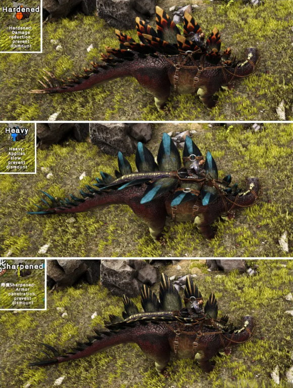首頁 方舟:生存進化 問答 方舟生存進化泰克劍龍三種形態有什麼用? 2023-01-12 1、硬化狀態:受到傷害減少,防止騎手被敵人強行下龍;木材收獲效率提高。2、重板狀態:使用尾巴攻擊時會有一個減速效果,茅草採集效率更高。3、銳化狀態:使用尾鞭攻擊時有裝甲穿透效果。也可用於收獲漿果。