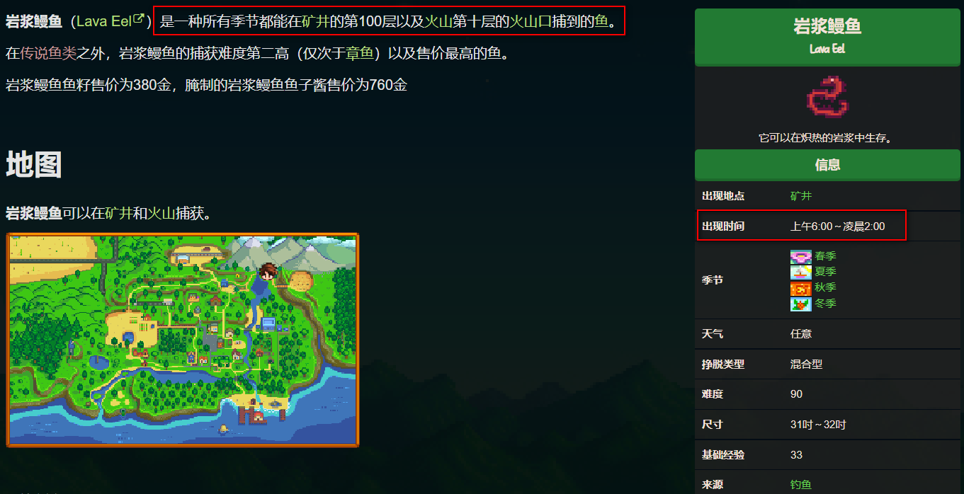 首頁 星露穀物語 問答 星露穀物語熔岩鰻魚釣不上來怎麼辦? 2023-01-12 岩漿(熔岩)鰻魚必須在上午6:00~凌晨2:00釣,其他時間鰻魚釣不上來。岩漿鰻魚是一種所有季節都能在礦井的第100層以及火山第十層的火山口捕到的魚。