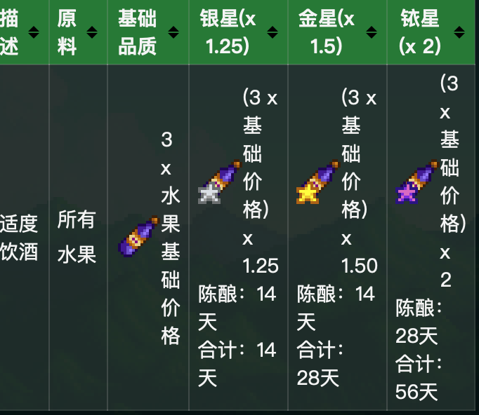 首頁 星露穀物語 問答 星露穀物語帶星號的物品什麼意思? 2023-01-12 星星代表了物品的品質,普通品質、銀星品質、金星品質、銥星品質,其中銥星品質最高。拿果酒為例,果酒可以放入酒桶陳釀,之後果酒便可以升為【金星】品質甚至【銥星】品質。銥星品質的物品是基礎品質物品價值的兩倍。