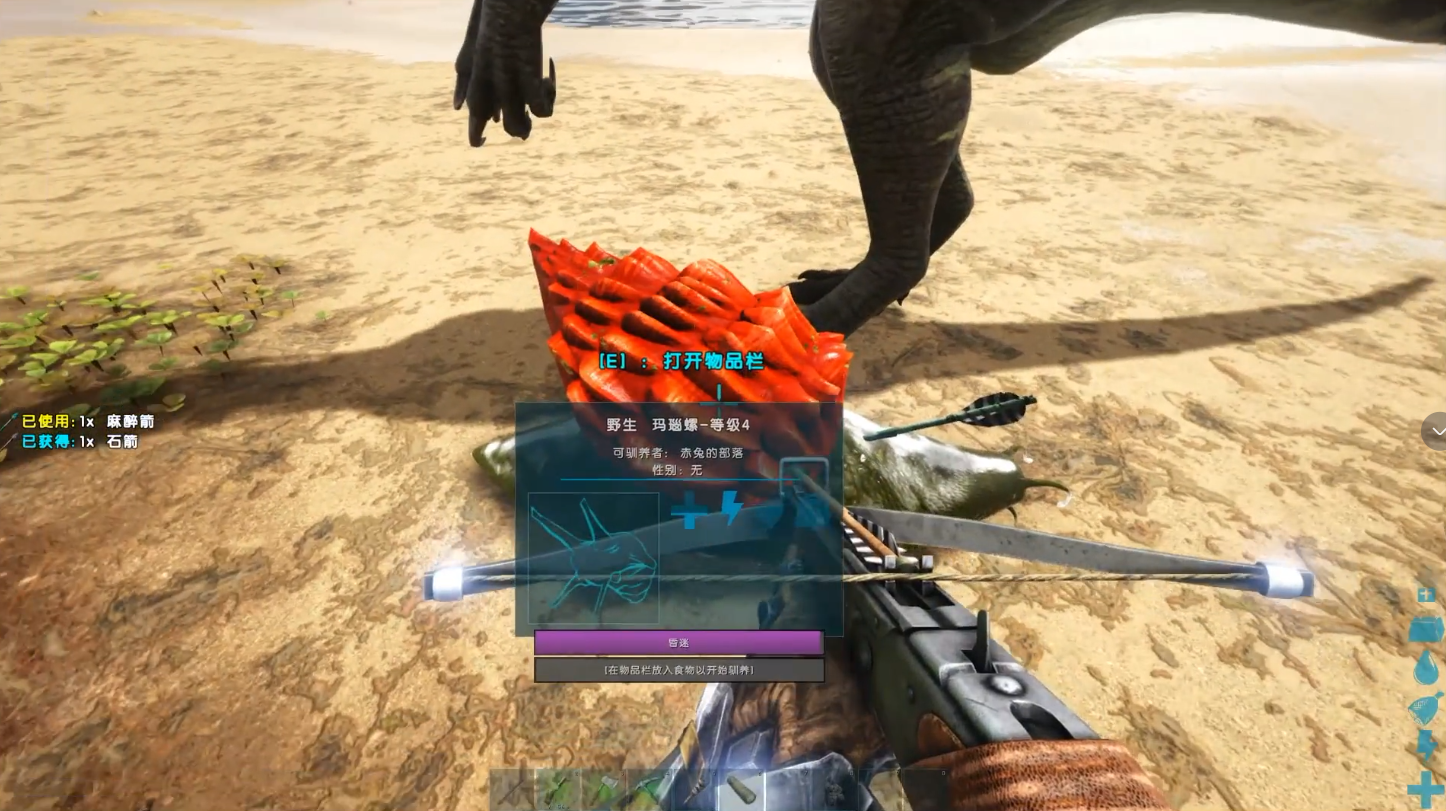 首頁 方舟:生存進化 問答 方舟生存進化蝸牛怎麼馴服? 2023-01-12 1、方舟生存進化中蝸牛就是瑪瑙螺,馴服方法是使用麻醉箭或十字弩將瑪瑙螺擊暈。2、打開它的背包放入蔬菜蛋糕,維持它的眩暈度。等瑪瑙螺的馴養進度滿值,即可成功馴服瑪瑙螺。