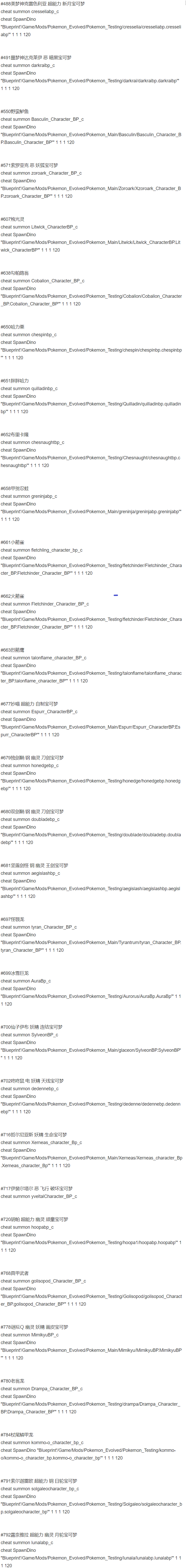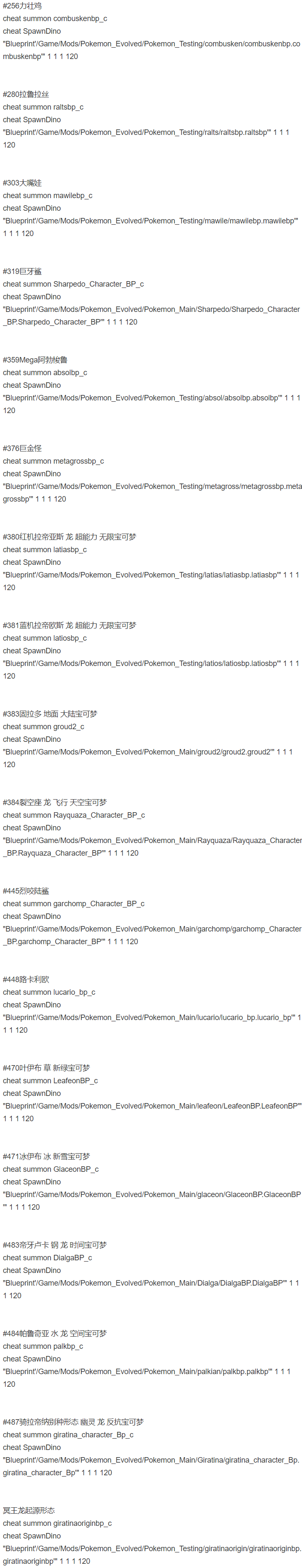 3、力壯雞、大嘴娃、巨牙鯊、無限寶可夢藍機拉帝歐斯等代碼。