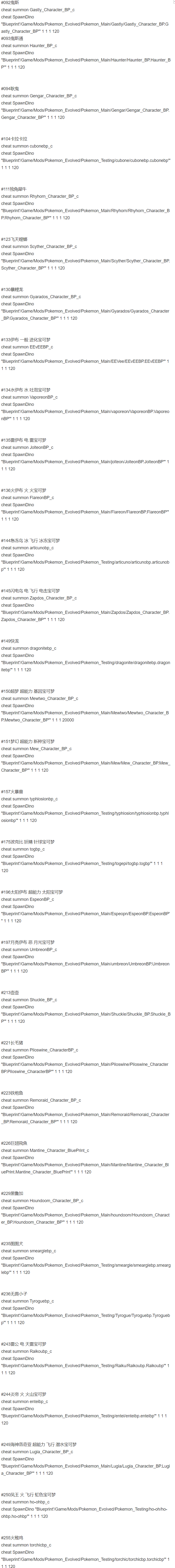 2、方舟中鬼斯、伊布、閃電鳥、夢幻等代碼。