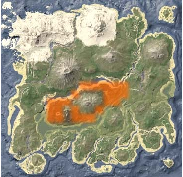 1、巨猿主要還是分布在紅木林裡邊,如下圖橙色部分,為沼澤和紅木林區域;
