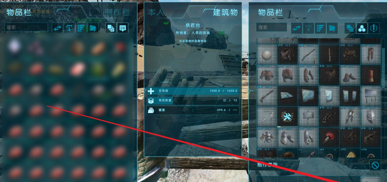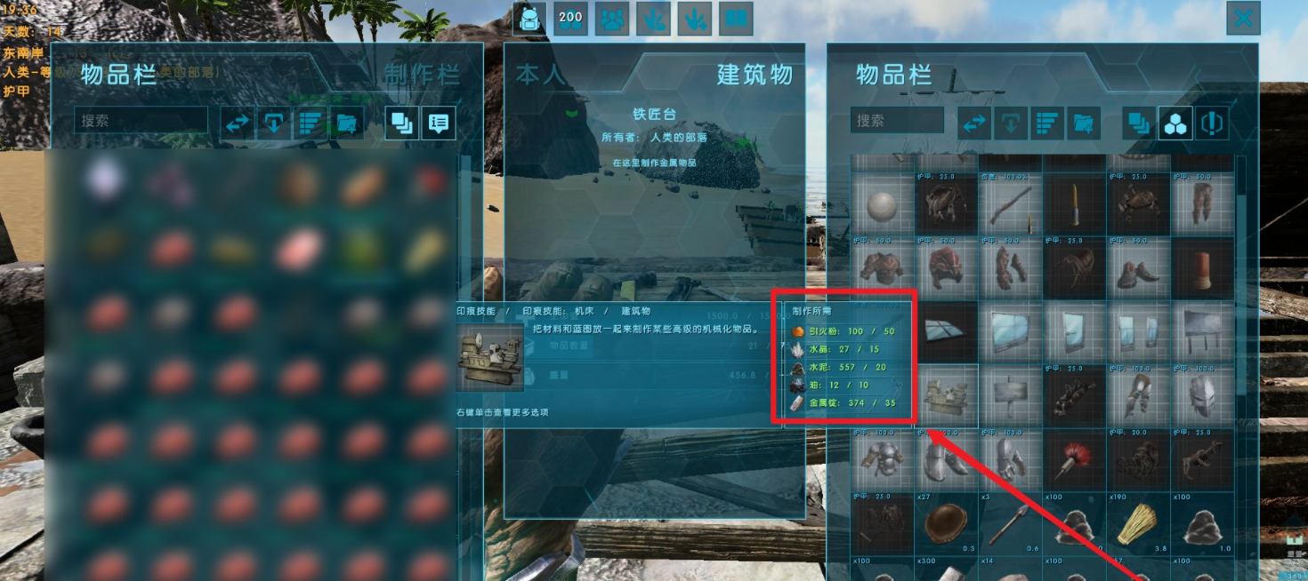 3、把製作機床的材料一起放到物品欄里。