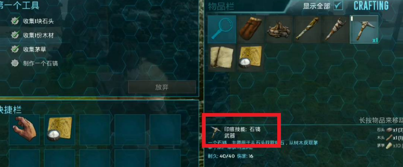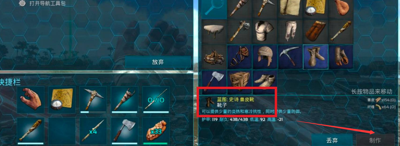 2、游游戲中不需要使用工作台來製作武器,打開背包後在背包中就能製作武器。