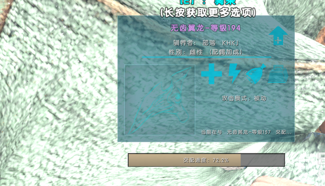 首頁 方舟:生存進化 問答 方舟:生存進化怎麼配對繁殖? 2023-01-14 方舟:生存進化配對繁殖的方法步驟如下:1、玩家進入游戲,打開後,找到雌雄兩種龍,然後對龍長按E,開啟交配模式。2、開啟後,即可開始交配,靠近龍即可看到加匹配進度,交配完成後,即可繁殖成功撿起龍蛋。