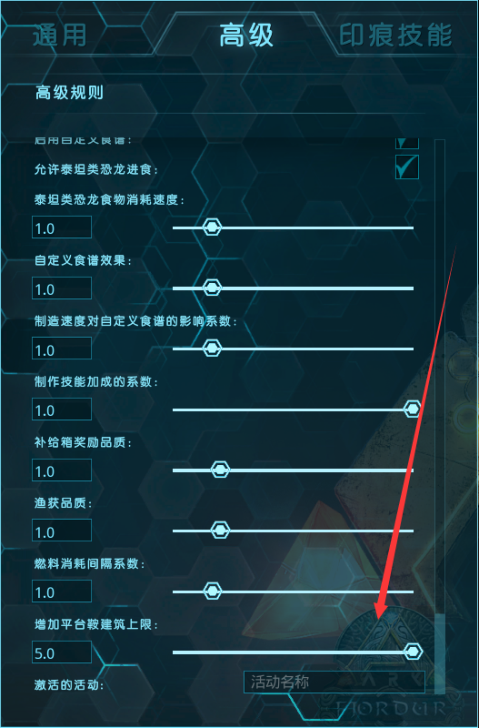 首頁 方舟:生存進化 問答 方舟:生存進化平台建築物數量達上限怎麼辦? 2023-01-14 平台建築物數量達上限其實想要解決這個問題很簡單,玩家需要點擊進入游戲後,在主菜單界面打開主機單人游戲,在這裡找到高級設置,在高級設置界面的最下面找到平台建築上限設置,把上限拉倒最高即可,具體圖片可查看下圖: