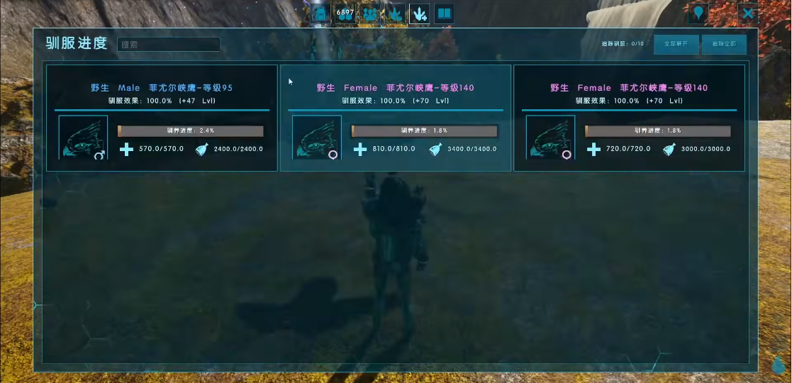 首頁 方舟:生存進化 問答 方舟菲尤爾峽鷹怎麼抓? 2023-01-15 在菲尤爾峽鷹附近擊殺生物即可餵食馴服1、靠近菲尤爾峽鷹,菲尤爾峽鷹就會主動跟著我們2、然後我們在周圍擊殺生物,菲尤爾峽鷹就會去啃食屍體(綿羊馴服效果比較好)3、這樣就會漲馴服條,循環此操作即可完成馴服