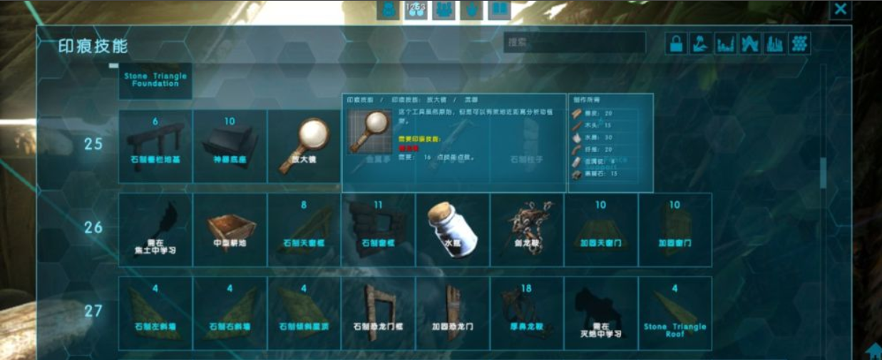 1、當角色人物等級達到25級及以上時,可以通過印痕技能學習放大鏡圖紙;