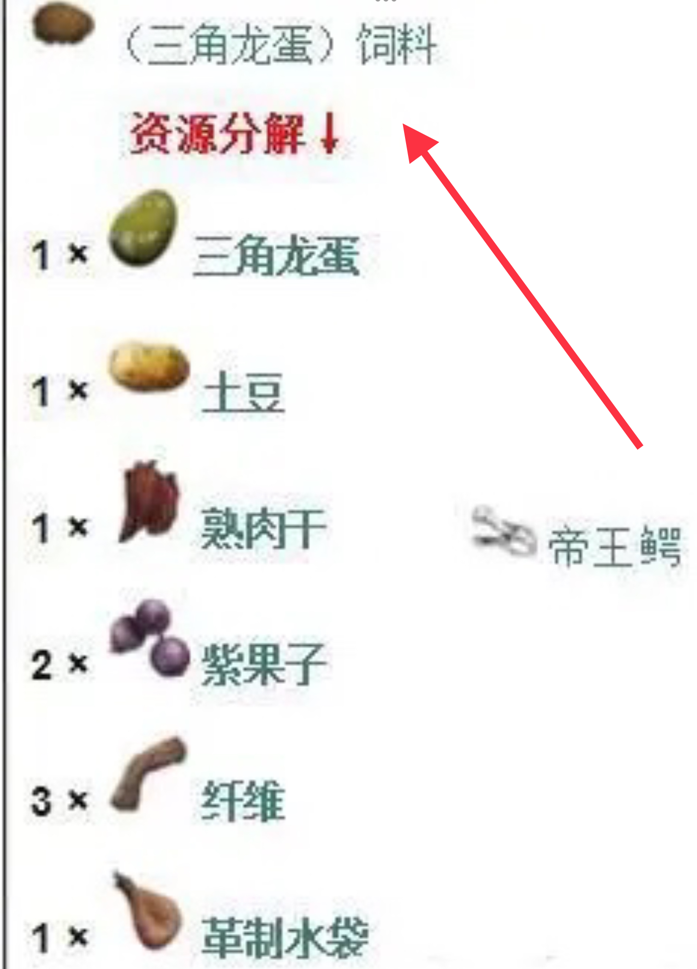 方舟三角龍蛋飼料配方是:三角龍蛋加土豆加肉乾所有飼料都必放:2個紫果加3個纖維(沒有工業大鍋就要放水不然出不來)。