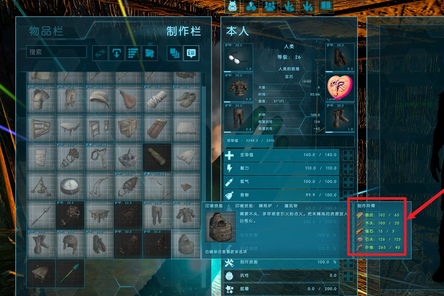 將前面這些准備好後打開【製作欄】,在裡面找到精煉爐然後選擇製作一個,然後等待一會即可製作成功