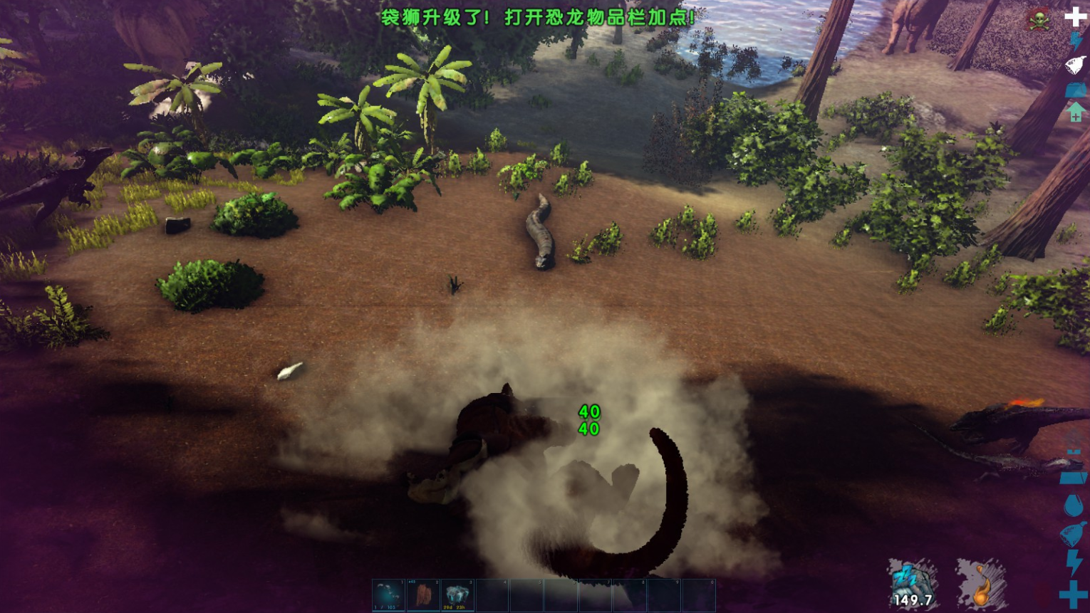 首頁 方舟:生存進化 問答 方舟袋獅有什麼用? 2023-01-16 袋獅的作用如下:1、袋獅可以在牆壁上以及紅樹林的樹木上攀爬。2、而且騎乘袋獅從高空落下會有減傷。3、騎乘袋獅攀爬在牆壁或者樹木上時,視線朝下,點擊滑鼠左鍵即可飛撲。