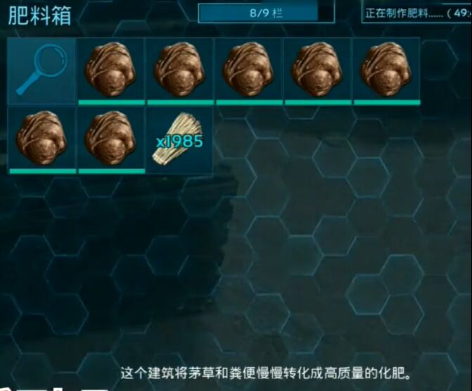 首頁 方舟:生存進化 問答 方舟生存進化化肥怎麼獲得? 2023-01-17 1.首先將肥料箱放置在平坦的地面上。2.肥料箱中可以放9個東西,在7個欄中放上中型動物糞便,1個欄中放上茅草,等待50分鍾之後就可以得到肥料。