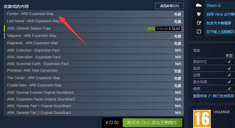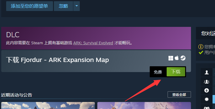 首頁 方舟:生存進化 問答 方舟:生存進化dlc怎麼安裝? 2023-01-17 方舟:生存進化dlc安裝方法如下:1、首先在steam搜索方舟:生存進化,如圖所示,點擊進入。2、然後點擊此游戲內容,以其中一個dlc版本為例,點擊打開。3、最後點擊免費下載即可安裝該dlc版本。