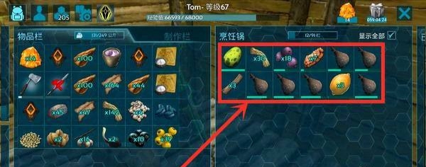 3、最後用異齒龍蛋 檸檬 肉乾,方舟中所有的飼料都必放:2紫果 3纖維(沒有工業大鍋,就要放水,不然很難製作出來,)製作異齒龍蛋飼料就完成了。
