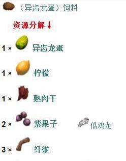 2、收集異齒龍蛋,檸檬,肉乾,2紫果,3纖維這些物品。
