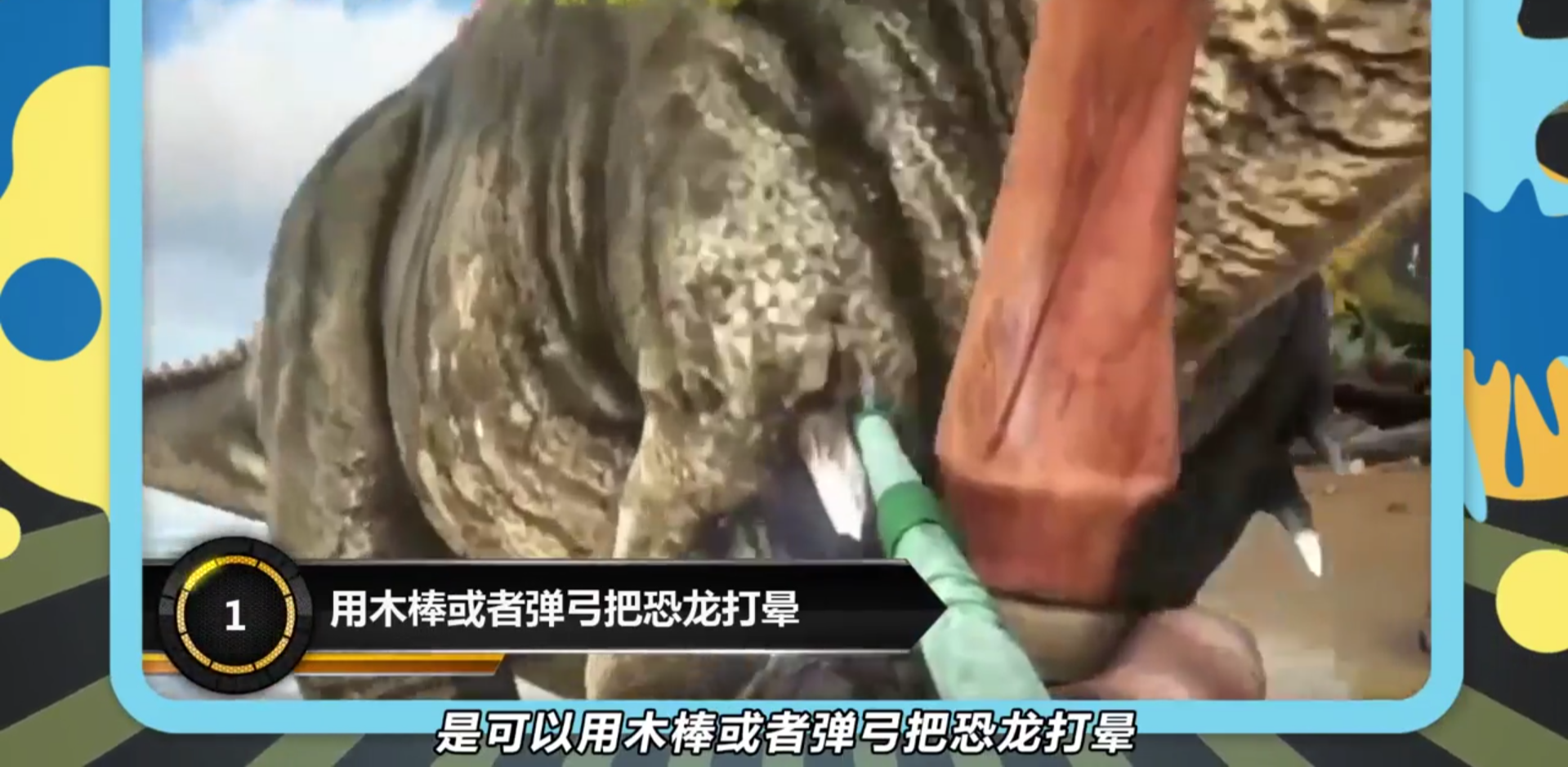 1.用木棒或者彈弓把恐龍打暈,打暈後就可以看到馴服條