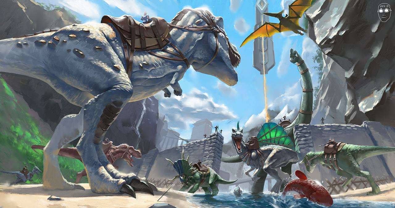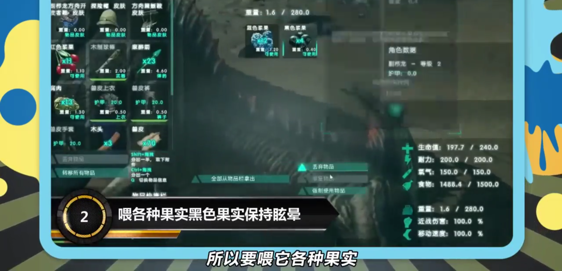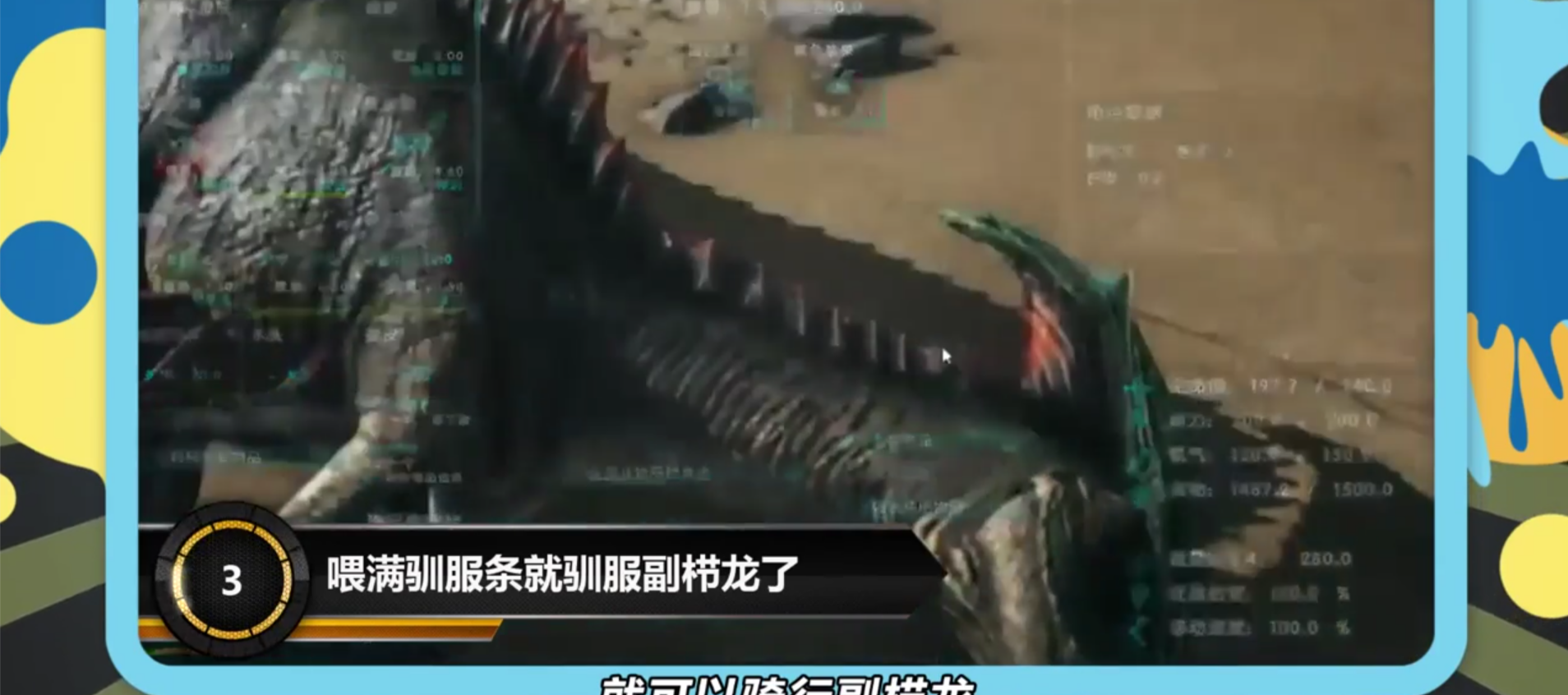 總結:用木棒或者彈弓把恐龍打暈,然後喂各種果實,馴服條滿後就可以騎行恐龍