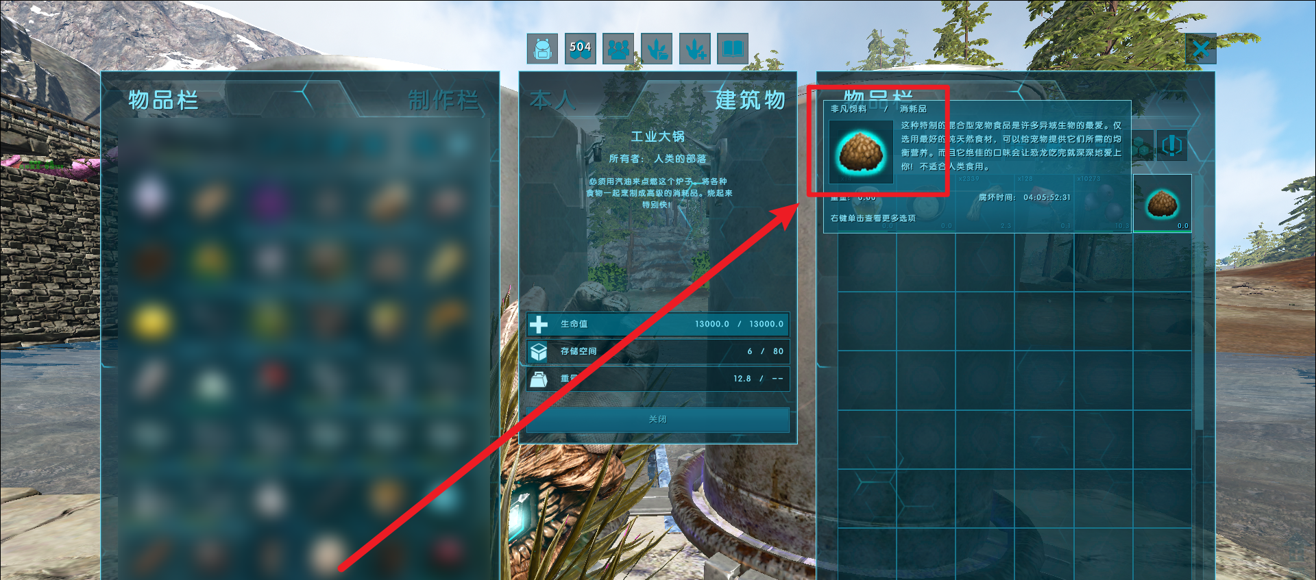 首頁 方舟:生存進化 問答 方舟生存進化非凡飼料怎麼製作? 2023-01-18 1、首先要製作非凡飼料需要使用烹飪鍋或者工業大鍋。2、非凡飼料的配方是:特型蛋、蜂蜜、拉撒路雜燴、紫色漿果10個、5個纖維和水,將這些材料放進去稍等片刻就製作出了非凡飼料,如下圖所示: