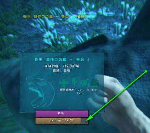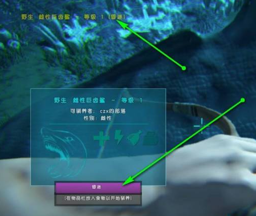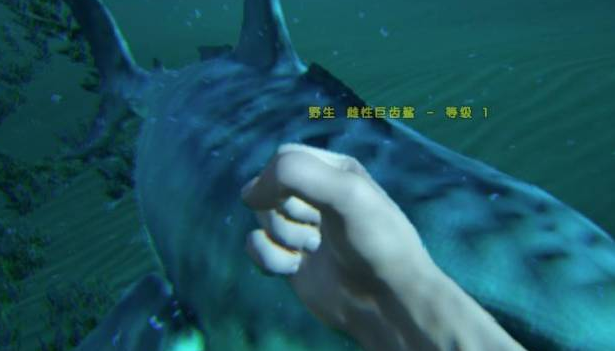 首先需要玩家在海洋中找到野生的巨齒鯊,如圖所示