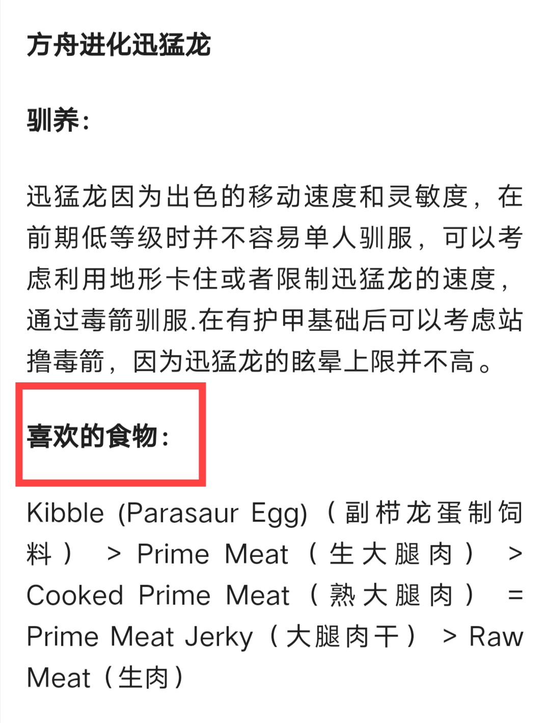 馴服飼料:副櫛龍蛋飼料>生羊肉>大腿肉>生肉。迅猛龍需要擊暈才可以馴服,玩家將其擊暈後喂養簡單的飼料或是肉。如圖所示: