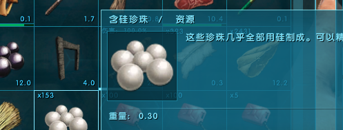 首頁 方舟:生存進化 問答 方舟:生存進化白珍珠怎麼採集? 2023-01-19 1、首先,打開方舟生存進化,打開後,找到一塊水域,找到後,進入水中在水底找到發光的貝殼。2、然後對貝殼按E鍵撿取,然後即可採集獲得白珍珠,如下圖所示: