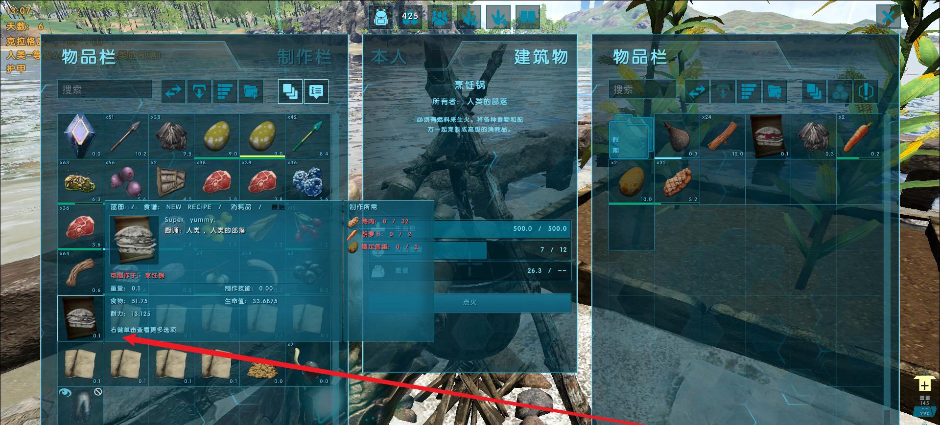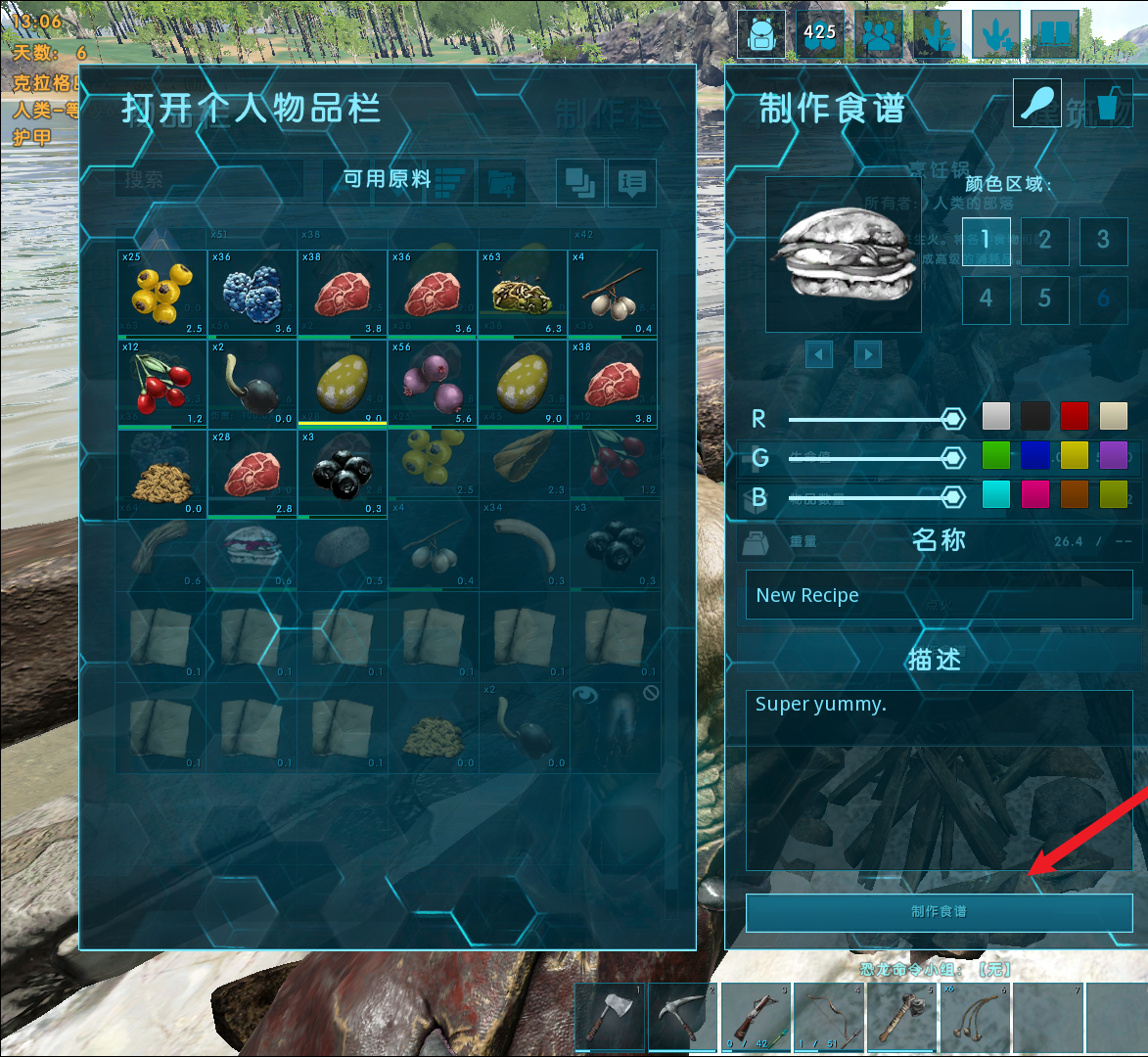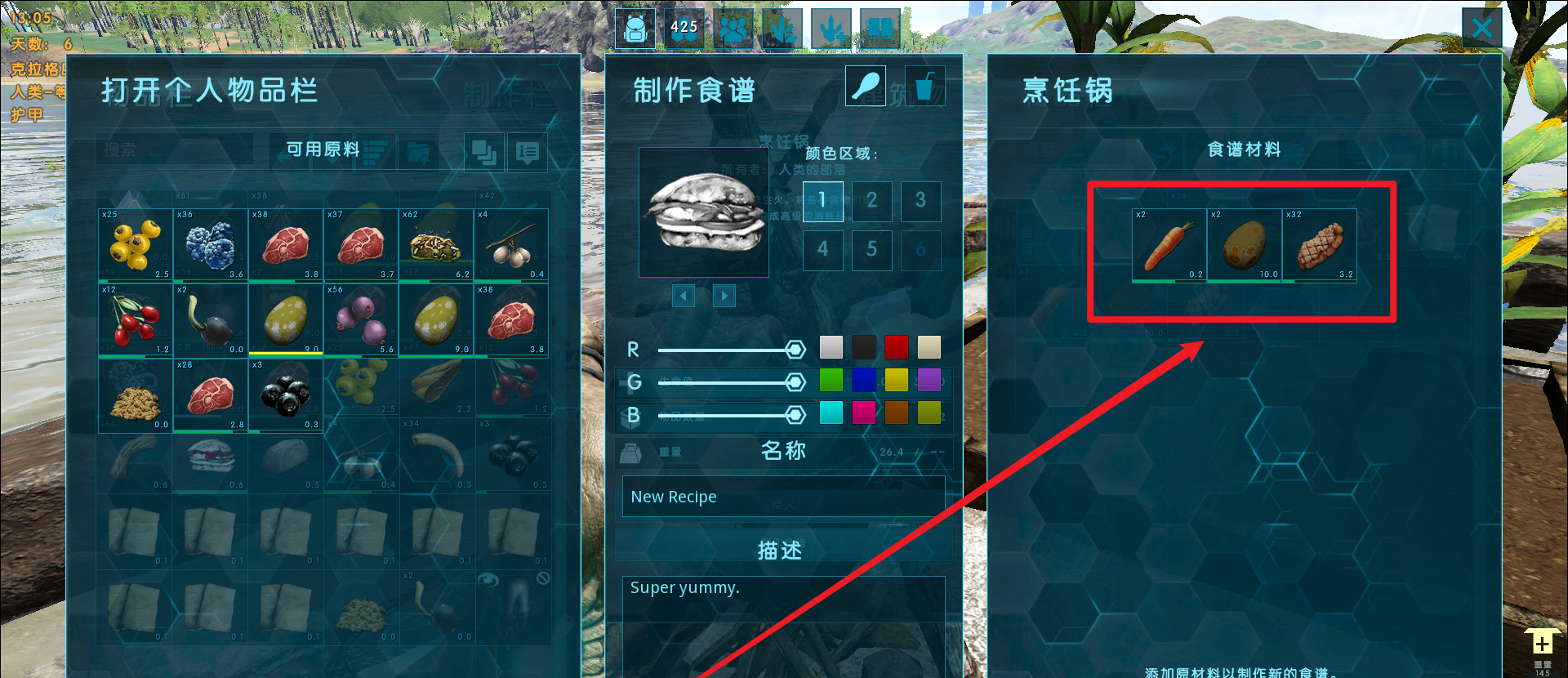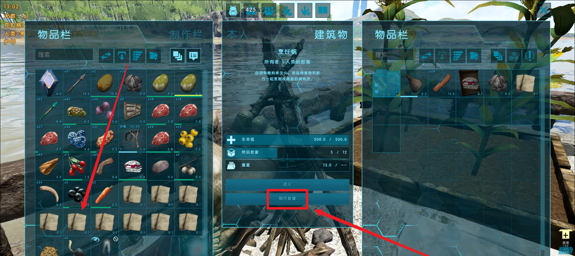 首頁 方舟:生存進化 問答 方舟:生存進化怎麼做飯? 2023-01-19 1、製作食譜需要在烹飪鍋里進行,靠近鍋長按E選擇打開物品欄,打開後將便簽紙放進去點擊製作食譜。2、接著把自己的食材放到烹飪鍋里,選擇好食物的顏色等各項參數後點擊製作食譜。3、最後製作完成後就獲得了食物,這樣就可以吃飯了。