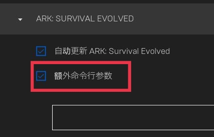 2、然後,遊戲玩家需要找到ARK,然後點擊展開,勾選額外命令行參數。