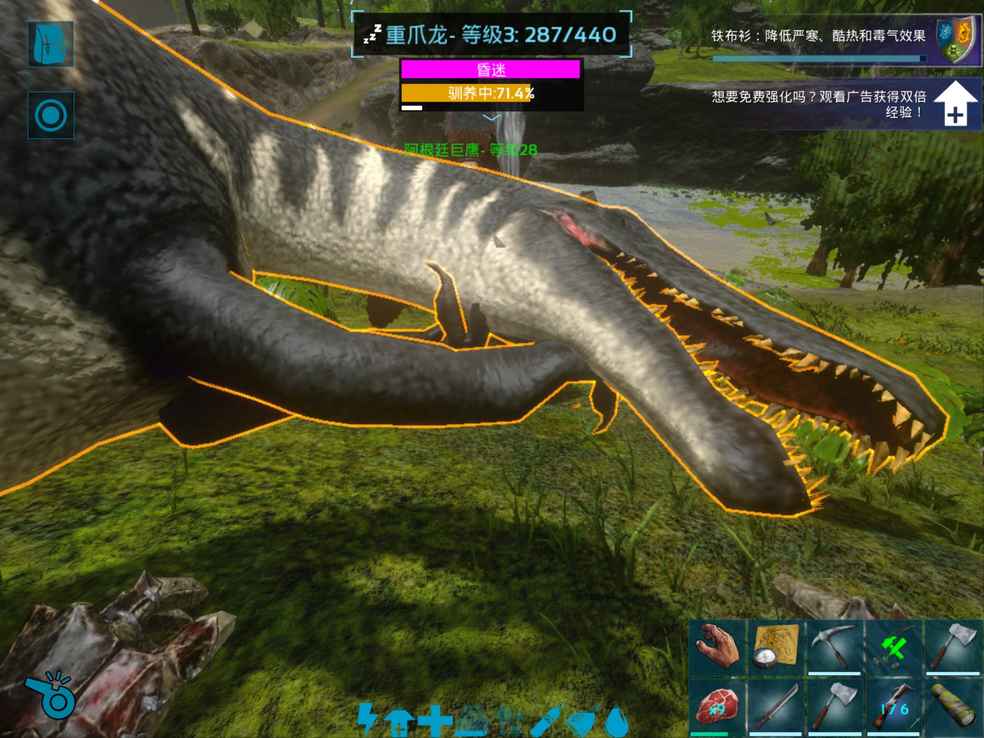 首頁 方舟:生存進化 問答 方舟重爪龍吃什麼飼料? 2023-01-22 方舟生存進化重爪龍吃魚肉和飼料,玩家需要注意:餵食生肉大腿肉無效,重爪龍最喜歡的食物為厚鼻龍蛋飼料、優質生魚肉、優質熟魚肉以及生魚肉,馴服重爪龍需要玩家使用麻醉鏢將其擊暈,然後靠近按【E】鍵放入食物即可。