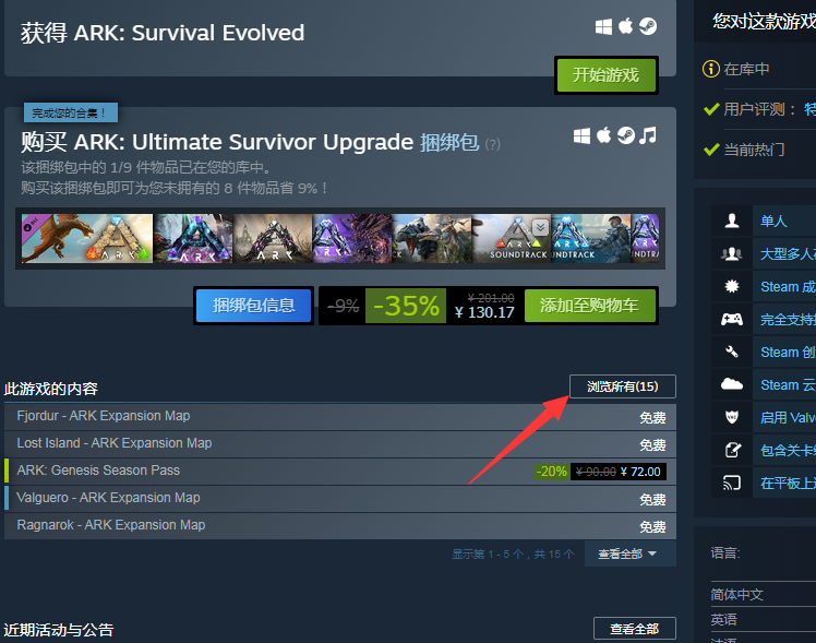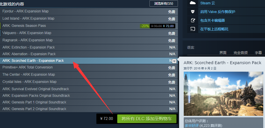 首頁 方舟:生存進化 問答 方舟:生存進化焦土dlc英文名是什麼? 2023-01-23 1、首先打開steam搜索欄,點擊進入游戲詳情界面。2、然後點擊此游戲內容中的瀏覽所有選項。3、打開後方舟:生存進化焦土dlc英文名是ARK: Scorched Earth - Expansion Pack,如箭頭所示。