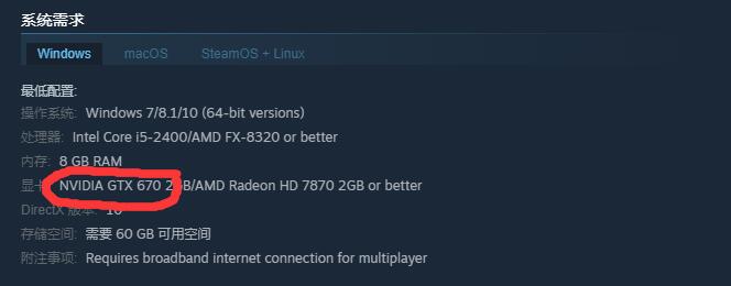 1,首先我們進入Steam方舟的界面查看這款游戲的配置要求,就可以發現這款游戲顯卡最低需要GTX670才能玩。