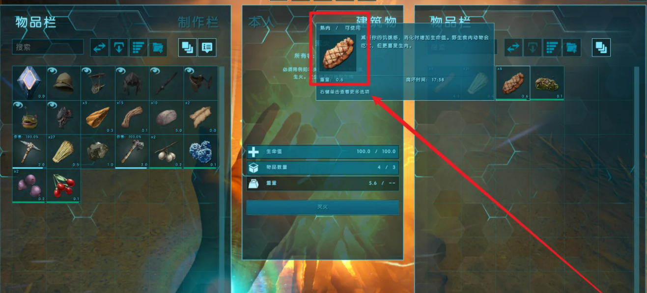 首頁 方舟:生存進化 問答 方舟:生存進化篝火怎麼煮熟肉? 2023-01-26 方舟:生存進化游戲中篝火煮熟肉的具體方法如下:靠近篝火長按E鍵選擇打開物品欄打開物品欄後把生肉放到篝火的物品里等待一段時間後就會出現熟肉選擇熟肉後按T鍵轉移到背包里在背包里選擇使用就可以食用了