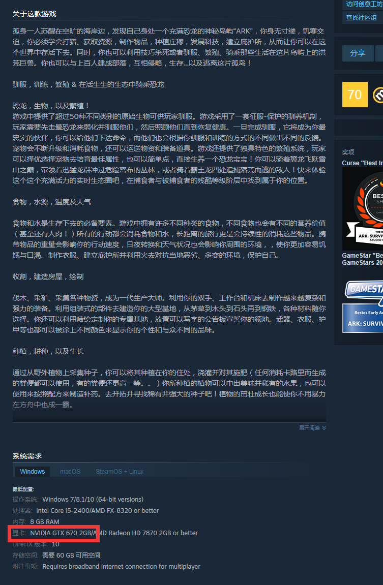 2、然後可以看到該游戲給出的系統需求,官方給出的顯卡需求是NVIDIA GTX 670,而3050ti的性能比該顯卡的性能好很多,所以是能玩的。