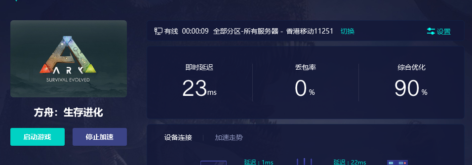 方舟生存進化是一款發售於2015年6月2日的游戲,並且該游戲主打的是多人聯機模式,但是該游戲的伺服器卻並不是很好,玩家在聯機遊玩時,如果想要更加順暢的聯機服務,那麼玩家是必須開啟加速器的,否則玩家有可能在聯機途中發生掉線等網路問題。