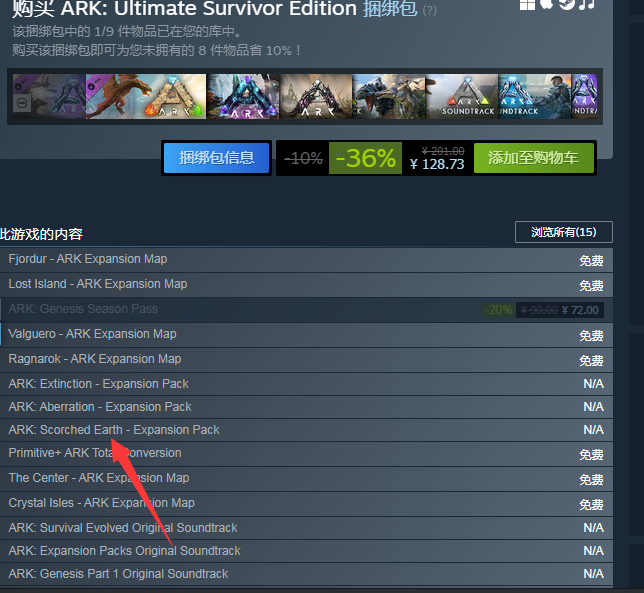 2、然後點擊此游戲的內容,找到箭頭所示的名字即是方舟:生存進化焦土。