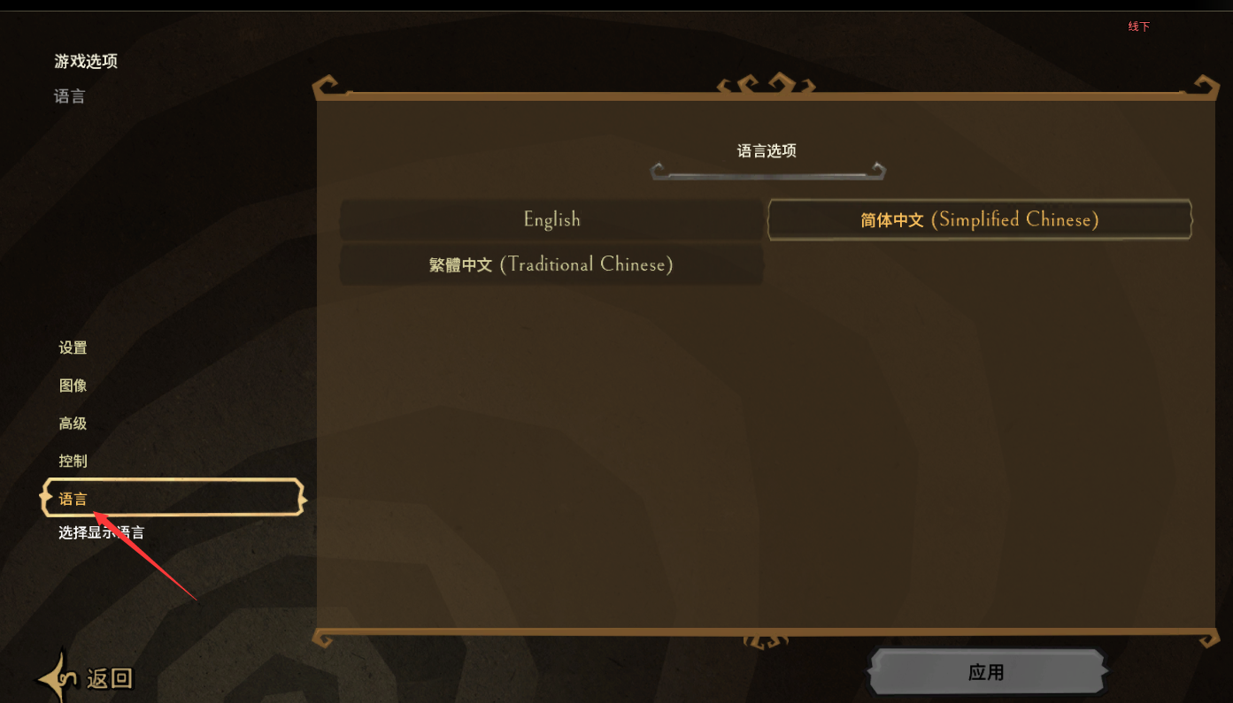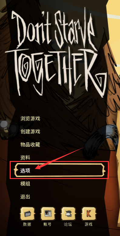 1.打開饑荒游戲後進入游戲主菜單,在主菜單界面中點擊選項。