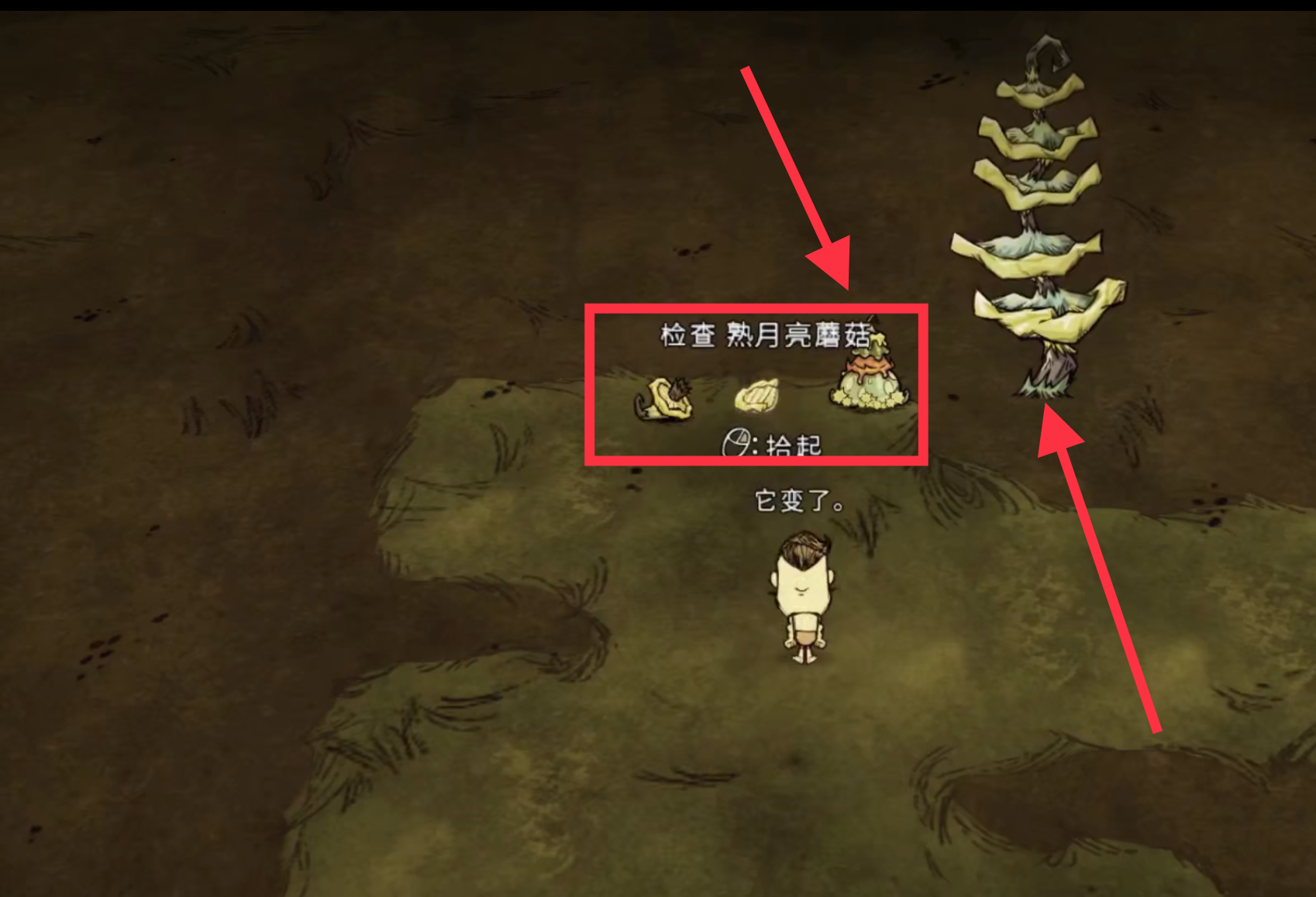 饑荒月亮蘑菇樹可以掉落月亮蘑菇,正常情況下進食2個便會陷入睡眠狀態,也可用來製作蘑菇蛋糕料理,抵擋月靈的「透心涼」攻擊。