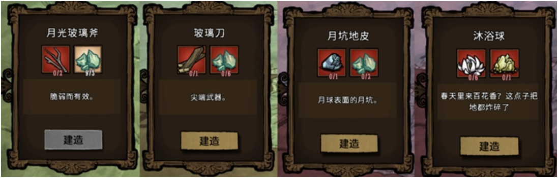 1、解鎖月島科技後,可以製作的東西有「月光玻璃斧」「玻璃刀」「月坑地皮」以及「沐浴球」。