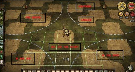 在游戲飢荒中,存在著各式各樣的不同的地形,有的地形沒有什麼危險也沒有什麼資源。有些地圖很危險但是物資
