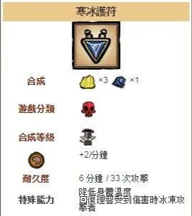 饑荒寒冰護符在佩戴後,永遠不會讓玩家過熱導致掉血,夏天用很好,冬天的話可能造成凍傷,雖然能降溫,不過並不能免疫火系傷害。