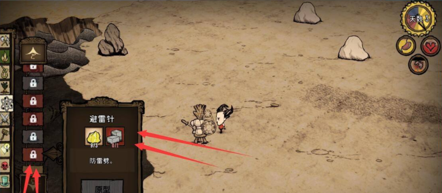 首先在【饑荒】游戲中建造一個科學機器,建造好科學機器,點開科學分類,這時就可以在科學最後一欄里找到【避雷針】,如下圖所示。