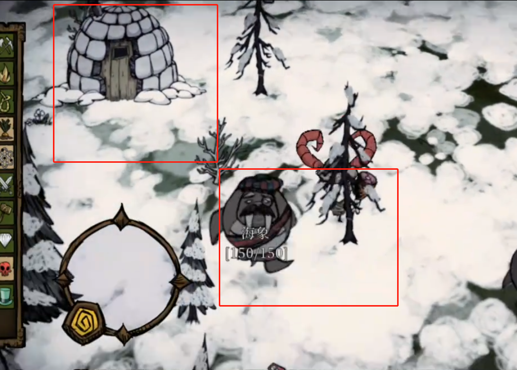 在饑荒這款游戲中,玩家擊殺了海象爸爸之後,小海象會躲在海象屋裡面不出來,每次擊殺海象爸爸會掉一份大肉和一支吹箭。